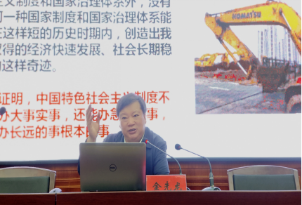 5月11日下午,校党委副书记金先龙应邀为威尼斯金沙欢乐娱人城第二十期业余党校学员上党课。威尼斯金沙欢乐娱人城党委书记马斌主持,党委委员陈斌岚、师生党员代表和全体党校学员参加。
