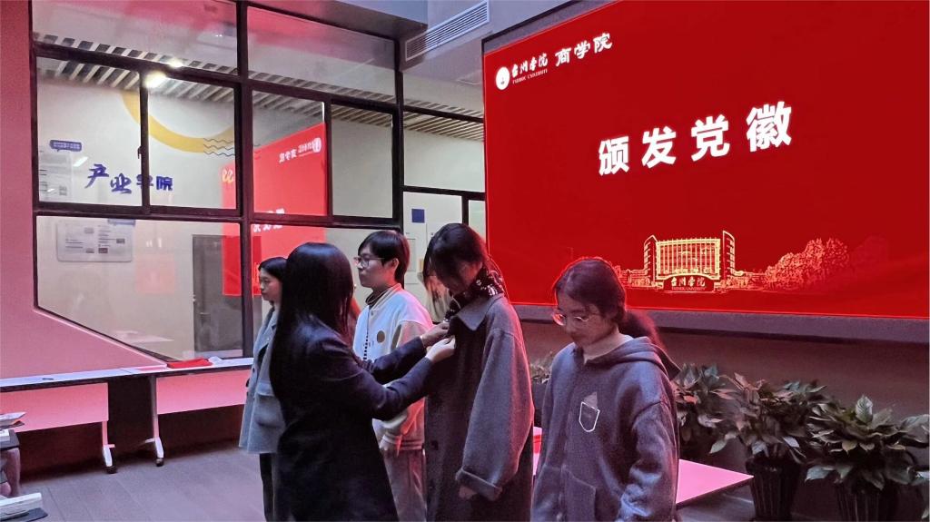 宣誓仪式在气势磅礴的国际歌中正式开始。在陈斌岚书记的领誓下,全体预备党员右手握拳,面向党旗,齐声念出入党誓词:“我志愿加入中国共产党,拥护党的纲领,遵守党的章程……为共产主义奋斗终身,随时准备为党和人民牺牲一切,永不叛党。”字字铿锵,句句千钧,表达了他们对党的无限忠诚和为共产主义事业奋斗终身的坚定决心,气氛热烈,振奋人心。紧接着,陈书记为新党员代表颁发党徽,这一神圣的时刻,新党员们感受到了党组织的信任与期望。同时,陈书记还给各支部代表赠书,为新党员们提供了进一步学习党的理论和知识的宝贵资源。